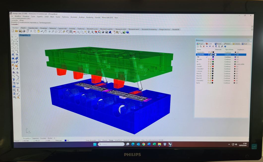Lo sviluppo del prodotto parte da un’idea, un campione o un disegno del cliente. L’esperienza pluriennale e le moderne tecnologie informatiche sono un notevole supporto allo studio di realizzazione pezzo e alla progettazione stampo.